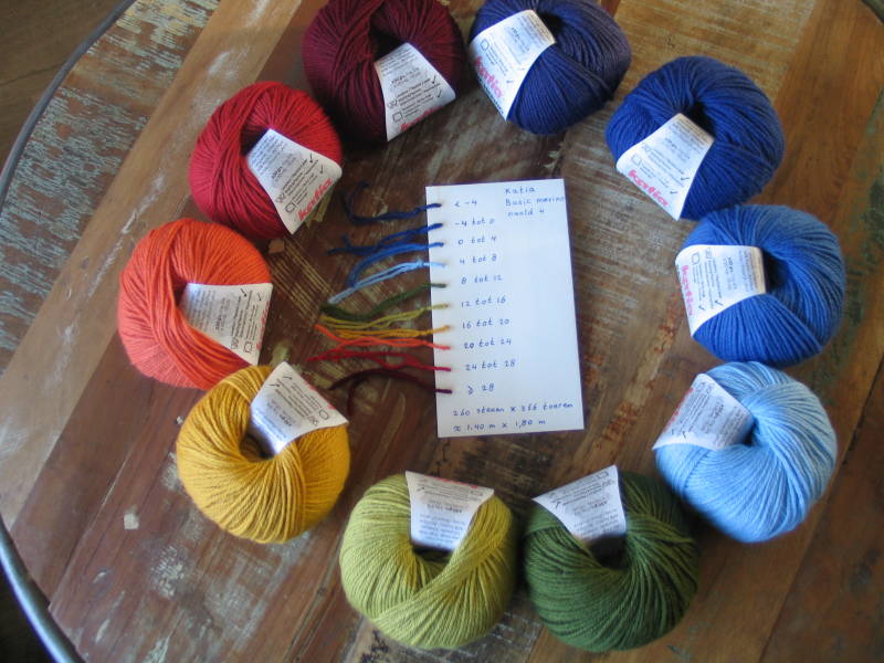 Het gebruikte materiaal is Katia Basic Merino (52% wol en 48% acryl) op haaknaald 4.